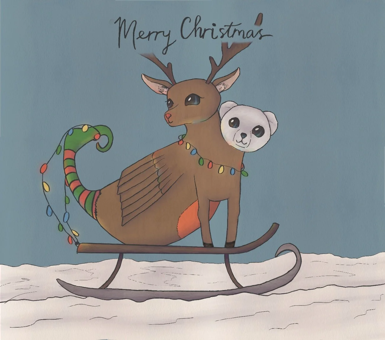 Christmas 2023 I designed some chimera themed Christmas cards, the characters on these cards are made up from parts of different iconic Christmas characters.